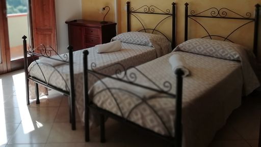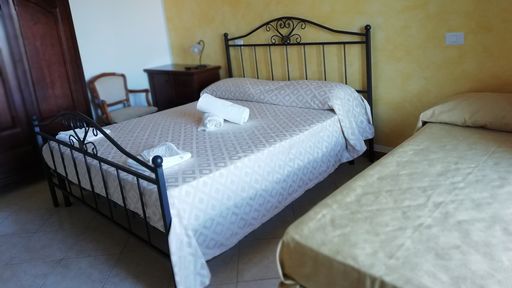 Im Erdgeschoss des Gebäudes befindet sich das Restaurant, in dem Sie schon beim Frühstück ein reichhaltiges Buffet mit hausgemachten Kuchen und anderen Desserts genießen können. Zum Mittag- und Abendessen werden traditionelle Gerichte mit Produkten aus dem Null-Kilometer-Bereich* oder ausgezeichnete Pizzen aus dem Holzofen serviert. Das Restaurant kann auch der Ort sein, an dem Sie Ihre Feste wie Geburtstage, Taufen oder Erstkommunionen feiern. Im Obergeschoss befinden sich die Zimmer, 8 Schlafzimmer mit eigenem Bad und Balkon. Die Zimmer haben Doppel- oder Einzelbetten, sind mit Fernseher und kostenlosem WiFi ausgestattet. Von der Terrasse aus können Sie ein wunderschönes Panorama genießen und sich beim Anblick eines Sonnenuntergangs entspannen. *Null-Kilometer-Produkte sind Produkte, die direkt im Erzeugungsgebiet bezogen werden, mit direktem Bezug vom Erzeuger und kurzer Lieferkette. Es gibt keinen Zwischenweg zwischen Erzeuger und Endverbraucher.