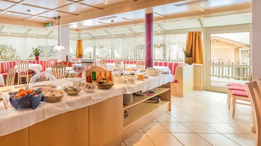 Bio-Frühstücksbuffet: frisches Gebäck, Marmeladenauswahl, Müsli, Wurst & Käse, Joghurt, Frühstücksei, Obst, Gemüse, Aufstriche und vieles mehr – dazu Kaffee, Tee von Sonnentor, Kakao & Bio-Säfte Mittags: knackiger Salat & heißer Suppentopf Nachmittags: hausgemachte Bio-Kuchen, im Sommer zusätzlich Kindereiszeit Abendessen: Kindermenü, Vorspeise / Salat oder Suppe vom Buffet, Hauptgang wahlweise Fleisch oder vegetarisch, Dessert Getränke: Bio-Säfte, Wasser, Tee, Kaffee ganztägig– sowie Bier & Bio-Wein zum Abendessen von 18.00 bis 20.00 Uhr